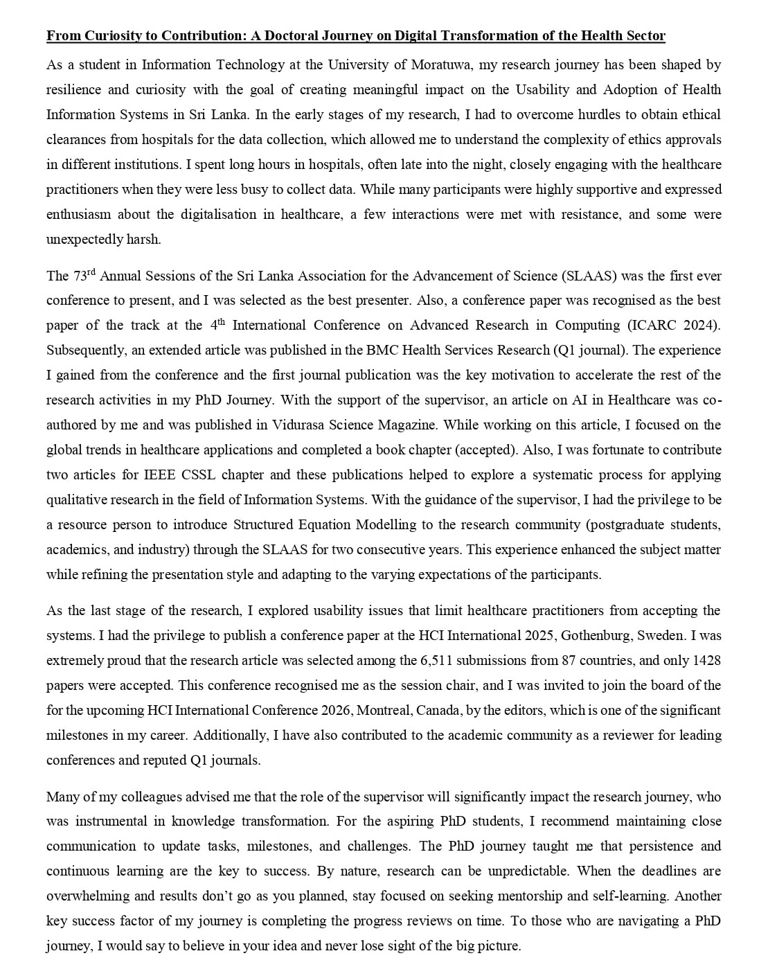 Once you complete your bachelor's degree, it's time to engage with a research degree if you are in a thrust to grow your future with research in any interested field. The very first stage to engage with UoM research is to find a potential supervisor who is doing in the same field you are interested.